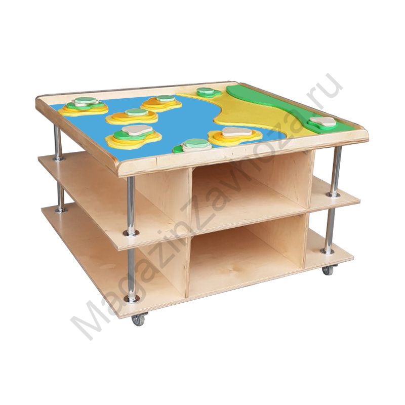 Из ЛДСП Бук или Цветного.Кромка ПВХ. Или из фанеры (ЛАК). Размеры:970х640х580/630мм Вес:33кг Объём:0,06м/куб 27 элементов ландшафта из фанеры. Установлены пластиковые или усиленные поворотные прорезиненные колеса. 2 из них со стопором (тормозом).