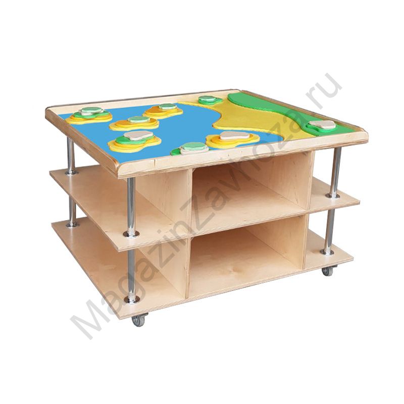 Из ЛДСП Бук или Цветного.Кромка ПВХ. Или из фанеры (ЛАК). Размеры:970х640х580/630мм Вес:33кг Объём:0,06м/куб 27 элементов ландшафта из фанеры. Установлены пластиковые или усиленные поворотные прорезиненные колеса. 2 из них со стопором (тормозом).