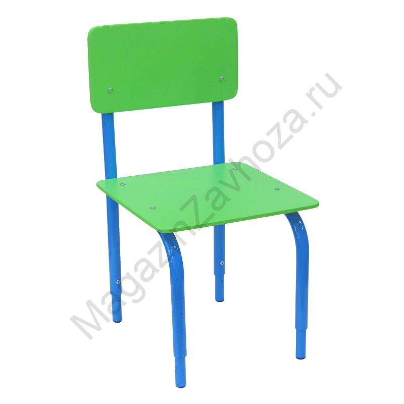 Изготовлен из трубы диаметром 22 и 18мм Сидение и спинка из МДФ 8 мм. Покрытие МДФ: краска "Тиккурила" ЗЕЛЁНАЯ Покрытие каркаса: полимер СИНИЙ Изменяемая высота: 220-260-300 , 260-300-340 , 300-340-380мм. Вес: 2.3 ; 2.5 ; 3 кг