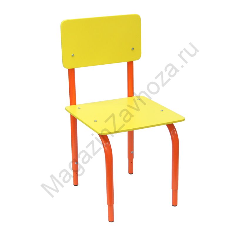 Изготовлен из трубы диаметром 22 и 18мм Сидение и спинка из МДФ 8 мм. Покрытие МДФ: краска "Тиккурила" ЖЁЛТАЯ Покрытие каркаса: полимер ОРАНЖЕВЫЙ Изменяемая высота: 220-260-300 , 260-300-340 , 300-340-380мм. Вес: 2.3 ; 2.5 ; 3 кг