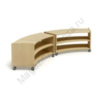Открытого типа. Из ЛДСП Бук и Цветного Кромка,Кант ПВХ. Размеры:1400х400х528мм Вес:46кг Объём:0,1м/куб Установлены пластиковые или усиленные поворотные прорезиненные колеса. 2 из них со стопором (тормозом).
