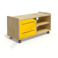 Из ЛДСП Бук и Цветного Кромка,Кант ПВХ. Фасад МДФ,покрытие краска Тиккурила. Задник: 1/2 стеллажа ЛДСП в цвет корпуса. Размеры:900х400х528мм Вес:23кг Объём:0,04м/куб Установлены пластиковые или усиленные поворотные прорезиненные колеса. 2 из них со стопором (тормозом).