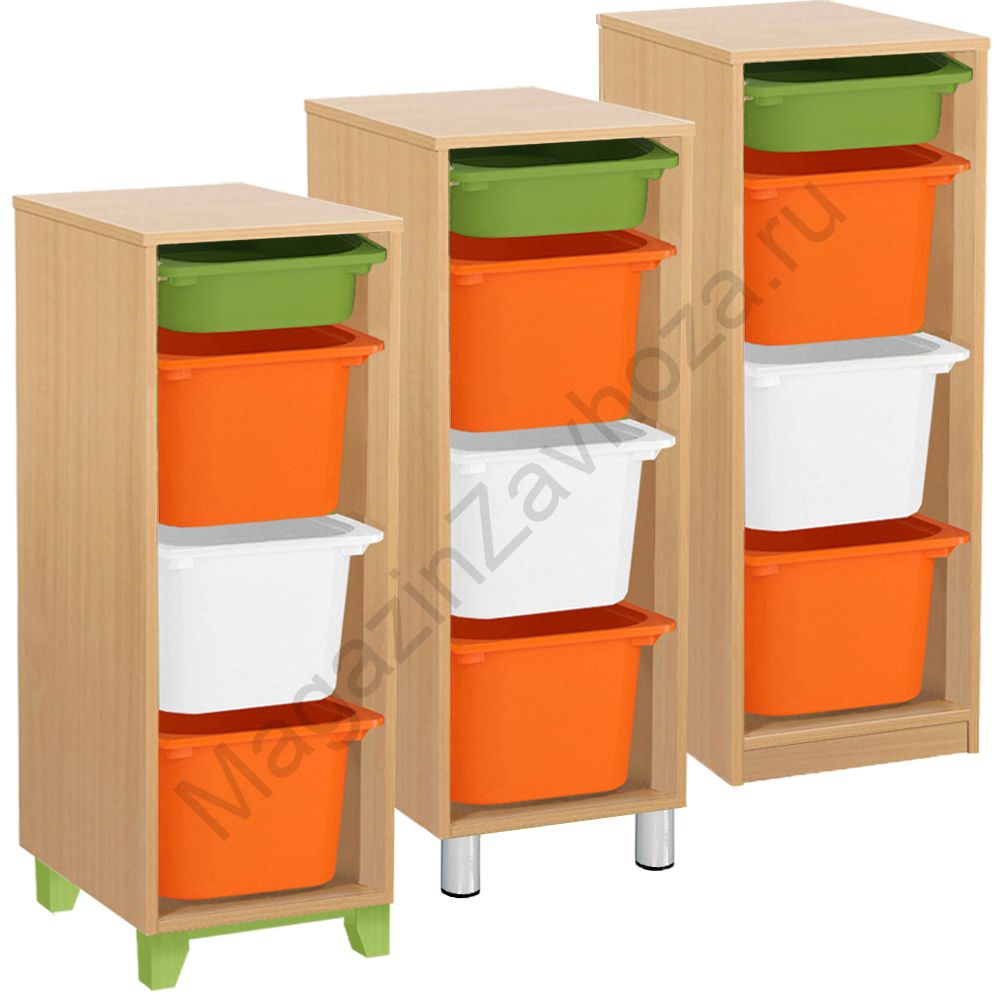 Из ЛДСП Бук или Цветного на цоколе р-ры:340х450х1100мм На метел.ножках р-ры: 340х450х1140мм Вес:23кг Объём:0,07м/куб Контейнер ПВХ:300х420х100мм - 1шт. Контейнер ПВХ:300х420х230мм - 3шт. Крепёж к стене обязателен. Направляющий полозок алюминий.