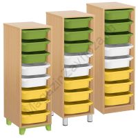 Из ЛДСП Бук или Цветного на цоколе р-ры : 340х450х1250мм На метел.ножках р-ры: 340х450х1290мм Вес:25кг Объём:0,075м/куб Контейнер ПВХ:300х420х100мм - 8шт. Крепёж к стене обязателен. Направляющий полозок алюминий.