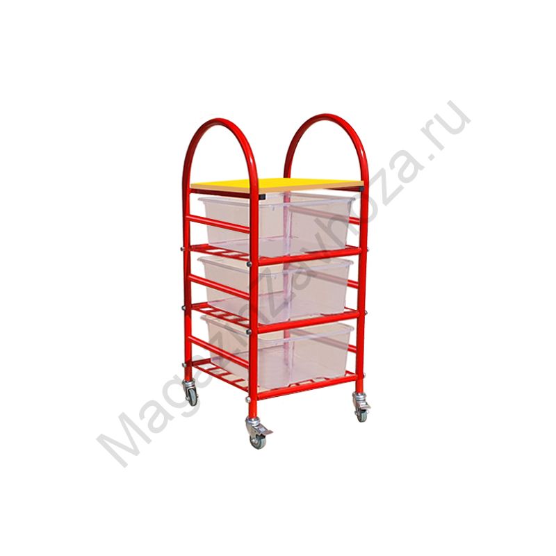 Из металлической трубы 22мм Покрытие: полимерно-порошковое Размеры:380х400х860мм Установлены усиленные поворотные прорезиненные колеса. 2 из них со стопором (тормозом). Вес: 5 кг Объём:0,1м/куб. Контейнер ПВХ :395х295х140мм - 3шт.