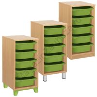 Из ЛДСП Бук или Цветного на цоколе р-ры:340х450х800мм На метел.ножках р-ры:340х450х840мм Вес:18кг Объём:0,06м/куб Контейнер ПВХ:300х420х100мм - 5шт. Крепёж к стене обязателен. Направляющий полозок алюминий.