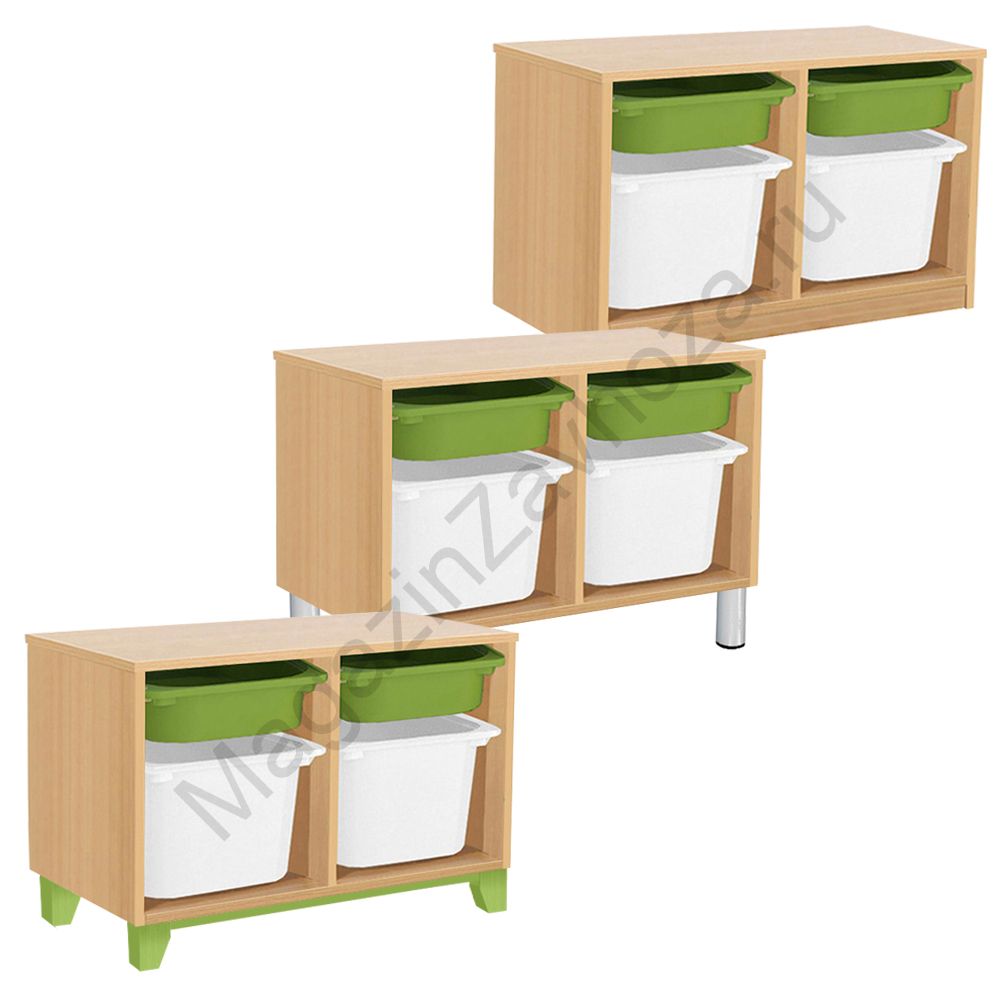 Из ЛДСП Бук или Цветного на цоколе р-ры: 650х450х500мм На метел.ножках р-ры: 650х450х540мм Вес:21кг Объём:0,07м/куб Контейнер ПВХ:300х420х100мм - 2шт. Контейнер ПВХ:300х420х230мм - 2шт. Направляющий полозок алюминий.