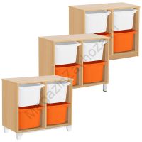 Из ЛДСП Бук или Цветного на цоколе р-ры: 650х450х650мм На метел.ножках р-ры: 650х450х690мм Вес:26кг Объём:0,08м/куб Контейнер ПВХ:300х420х230мм - 4шт. Направляющий полозок алюминий.
