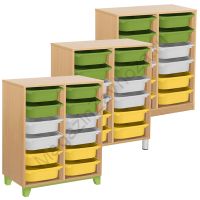 Из ЛДСП Бук или Цветного на цоколе р-ры: 650х450х950мм На метел.ножках р-ры: 650х450х990мм Вес:35кг Объём:0,1м/куб Контейнер ПВХ:300х420х100мм - 12шт. Крепёж к стене обязателен. Направляющий полозок алюминий.
