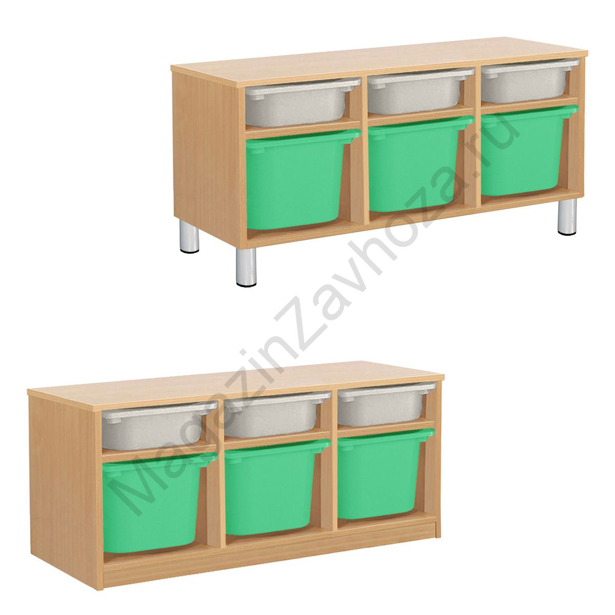 Из ЛДСП Бук или Цветного на цоколе р-ры: 976х450х500мм На метел.ножках р-ры: 976х450х540мм Вес:31кг Объём:0,09м/куб Контейнер ПВХ:300х420х100мм - 3шт. Контейнер ПВХ:300х420х230мм - 3шт. Направляющий полозок алюминий.