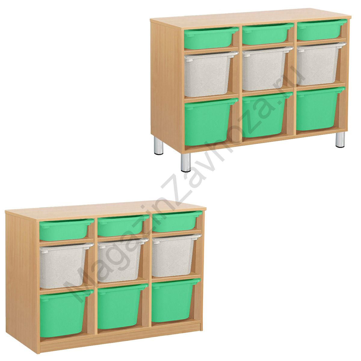 Из ЛДСП Бук или Цветного на цоколе р-ры: 976х450х800мм На метел.ножках р-ры: 976х450х840мм Вес:44кг Объём:0,15м/куб Контейнер ПВХ:300х420х100мм - 3шт. Контейнер ПВХ:300х420х230мм - 6шт. Крепёж к стене обязателен. Направляющий полозок алюминий.