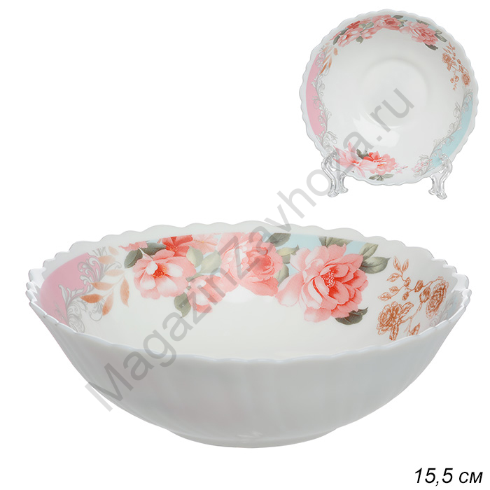 Салатник 400мл 155 мм / TW-60XN (6801) /уп 6/72/ Розы на голубом