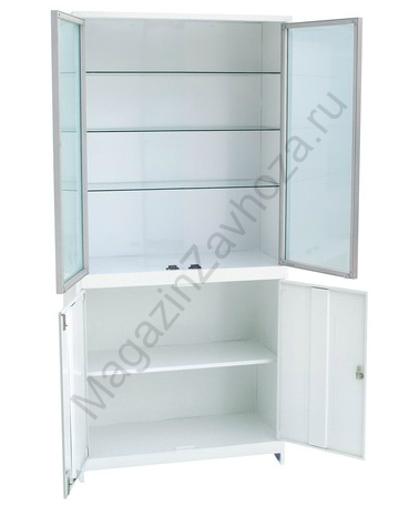 • Две стеклянные двери обрамленные алюминиевым профилем.