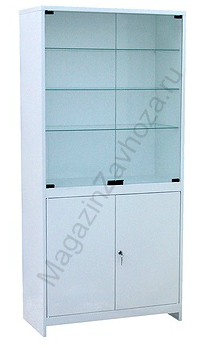 • Две стеклянные двери и три полки в верхней части.
