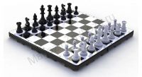 Доска и фигуры пластиковые. Преимущество пластика -- легко мыть. Веса шахматных фигур: пешка - 5 г; офицер -- 8 г; конь -- 8 г; ладья - 9 г; ферзь - 12 г; король - 15 г. Гарантия -- 1 год.