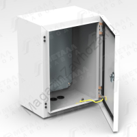 Сварной металлический корпус со съемной монтажной панелью. Степень защиты - IP54, для установки под открытым небом, в помещениях с повышенной влажностью.