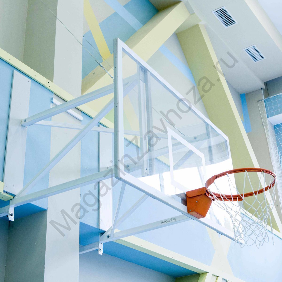 Требуется жесткая опора с обратной стороны щита в месте крепления кольца. Баскетбольное кольцо крепится непосредственно к несущей балке фермы через щит, тем самым снимая нагрузку с баскетбольной щита.