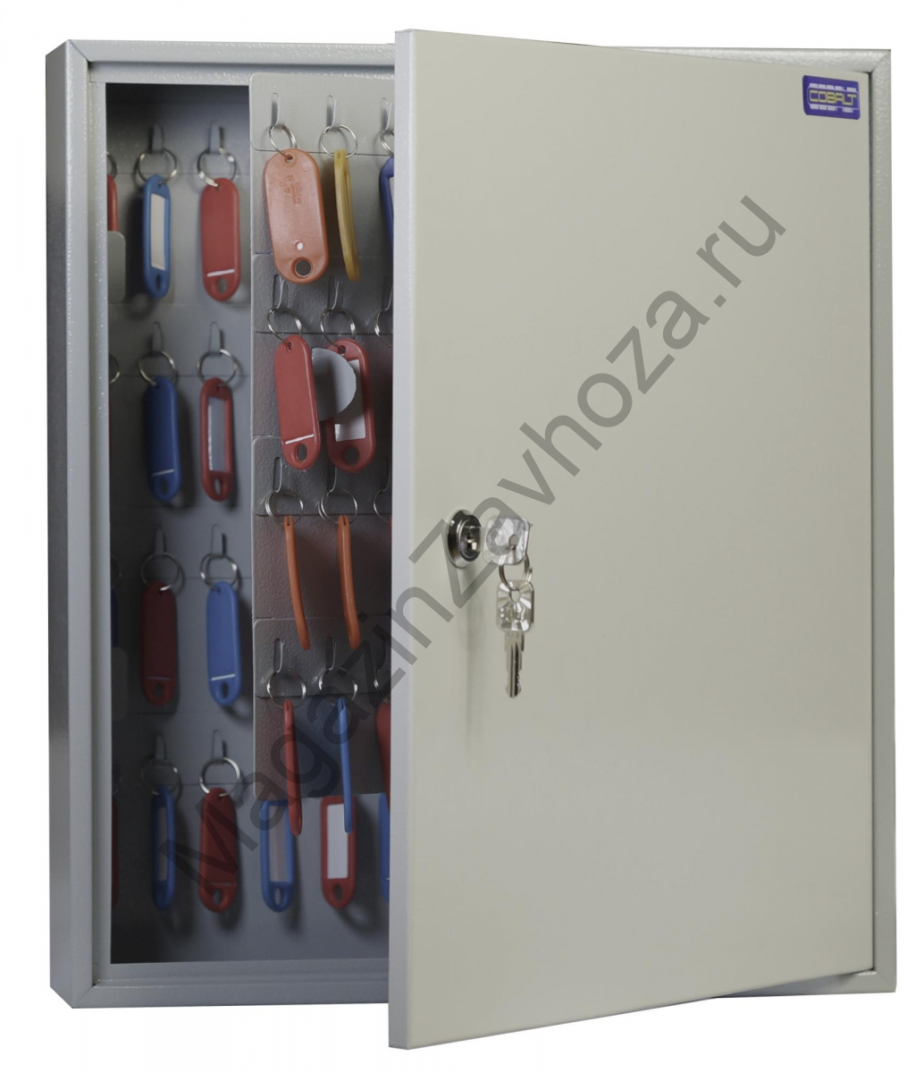 Ключевой замок, полимерное покрытие, отверстия для крепления на стену. В комплекте поставляются пластиковые брелоки