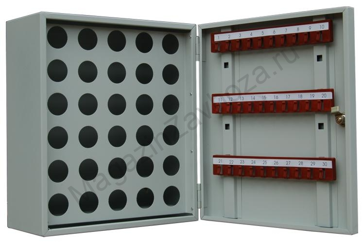 • Ключница КЛ-30П предназначена для хранения тридцати комплектов ключей и тридцати пеналов.