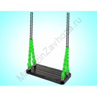 Сиденье для детских качелей из термопласта. Габаритный размер — 440х175х1800 мм. Изделие состоит из алюминиевой пластины, сверху покрытой термоэластопластом. За счёт металлической закладной сиденье отличается прочностью и выдерживает повышенные нагрузки. Изделие имеет антискользящую поверхность. Для крепления сиденья на качели в комплекте поставляются подвесы из оцинкованной цепи, покрытой термоусадочной пленко