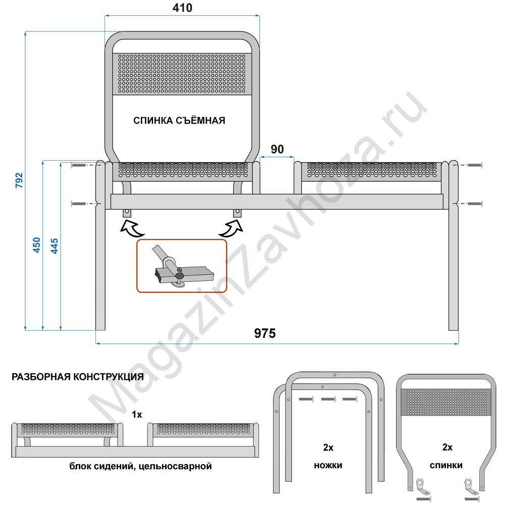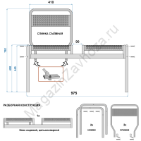Каркас: стальная труба. Разборная конструкция. Размер товара (Ш*Г*В, мм): 975*405*450h. Со спинками 975*470*790h.
