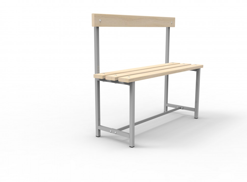 Скамья изготовлена на металлическом каркасе из трубы квадратного сечения 25х25, покрытым порошковой полимерной краской серого цвета. Сиденье доска шлифованная, покрыта лакосодержащим составом. Изделие предназначено для установки в раздевалках, спортивных школах и дошкольных учреждениях. Поставляется в разобранном виде, в компактной картонной таре.