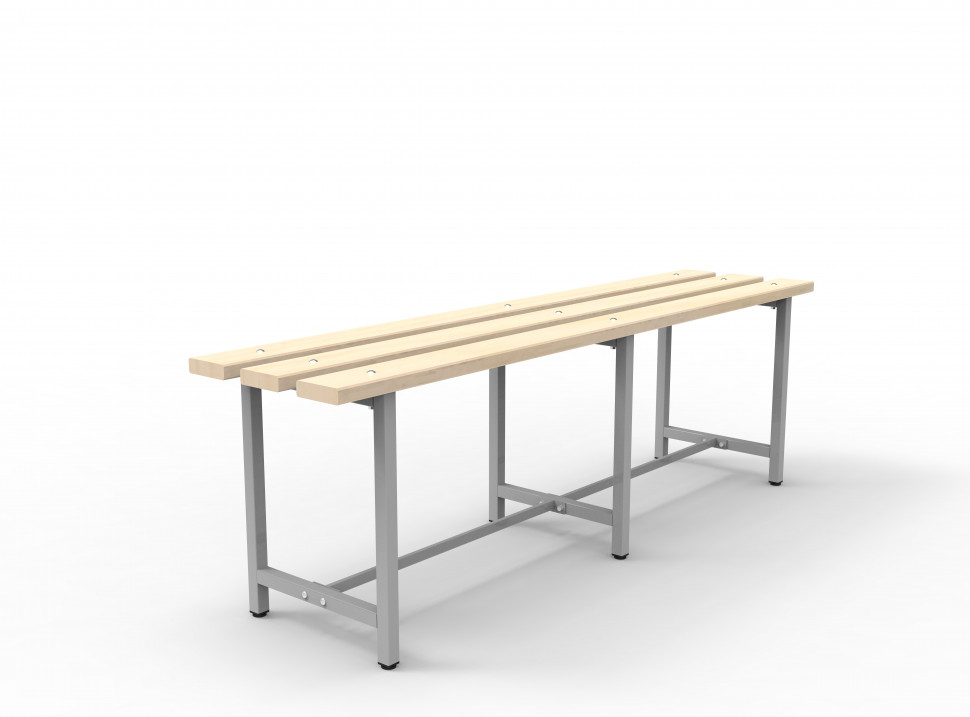 Скамья изготовлена на металлическом каркасе из трубы квадратного сечения 25х25, покрытым порошковой полимерной краской серого цвета. Сиденье доска шлифованная, покрыта лакосодержащим составом. Изделие предназначено для установки в раздевалках, спортивных школах и дошкольных учреждениях. Поставляется в разобранном виде, в компактной картонной таре.