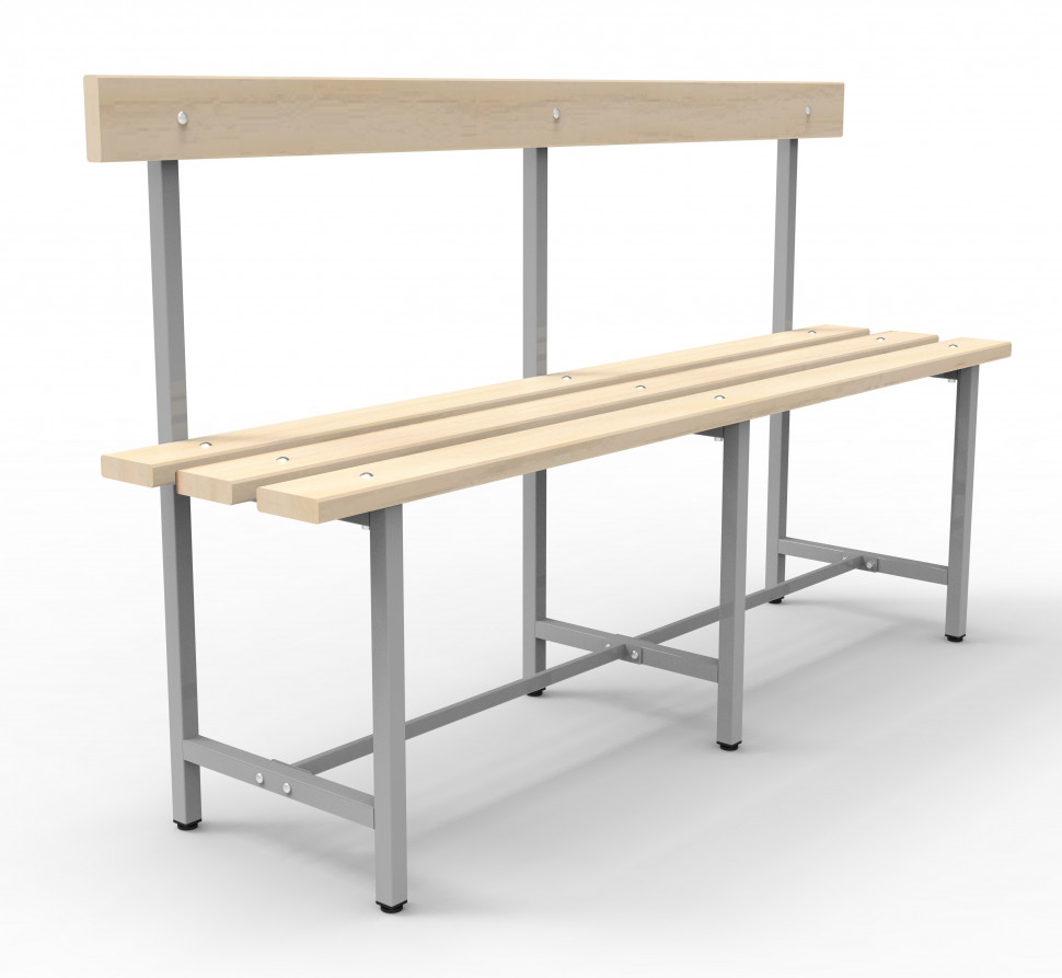 Скамья изготовлена на металлическом каркасе из трубы квадратного сечения 25х25, покрытым порошковой полимерной краской серого цвета. Сиденье доска шлифованная, покрыта лакосодержащим составом. Изделие предназначено для установки в раздевалках, спортивных школах и дошкольных учреждениях. Поставляется в разобранном виде, в компактной картонной таре.