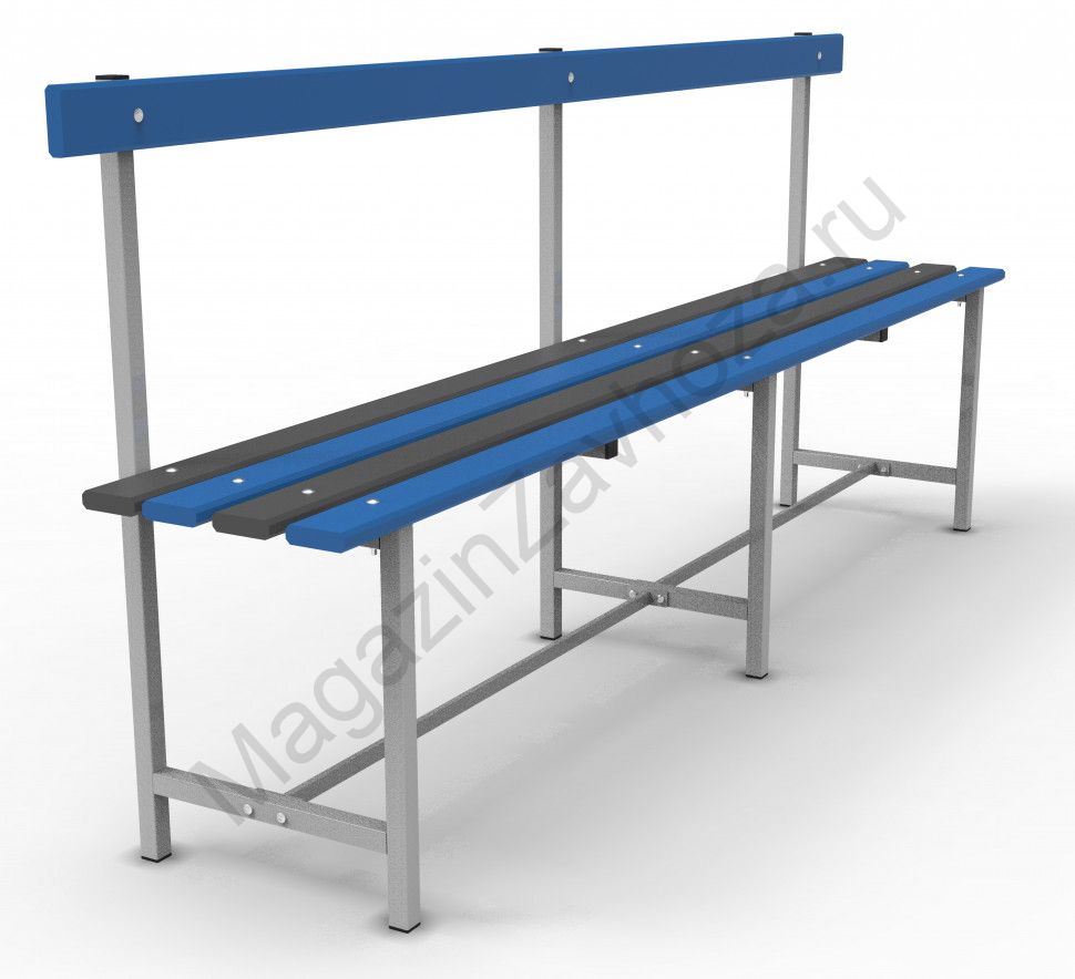 Скамья предназначена для установки в раздевалках, спортивных школах, бассейнах и дошкольных учреждениях.