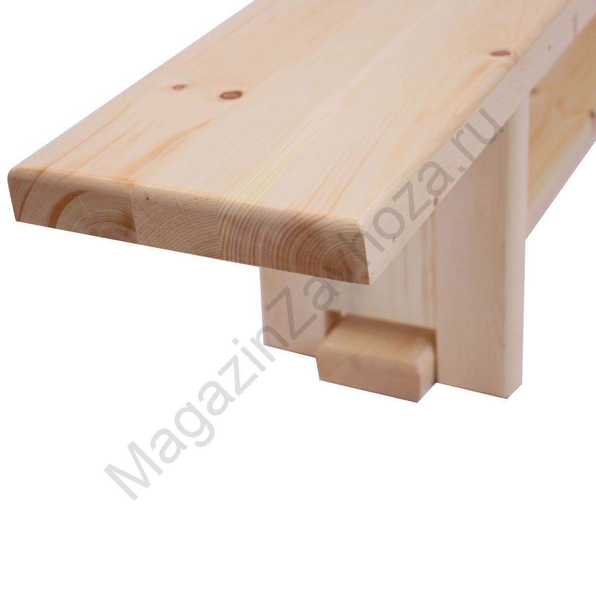 Сидушка – деревянный клееный щит, 2 деревянные ножки, снизу царга шириной 10 см.