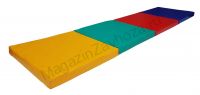 Размер (см): 200*50*5. Мат выполнен из упругого поролона, который позволяет гасить силу удара при падении или соскоке со спортивного снаряда. В качестве внешнего покрытия используются влагостойкая мебельная винилискожа ярких цветов. Материал не требует особого ухода и легко моется. Нескользящая поверхность мата приятна на ощупь. При производстве мата используются гипоаллергенные материалы российского производства. Размер: в разложенном виде 200х50х5 см, в сложенном - 50х50х20.
