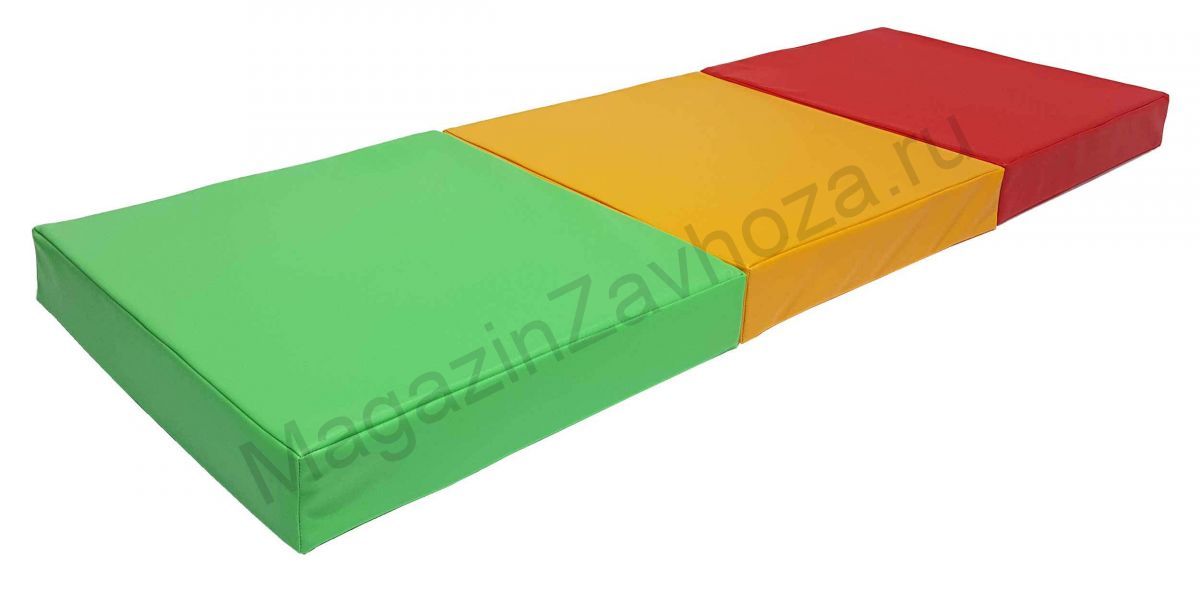 Размер (см): 60х180х10 (60х60х30). Мат выполнен из упругого поролона, который позволяет гасить силу удара при падении или соскоке со спортивного снаряда. В качестве внешнего покрытия используются влагостойкая мебельная винилискожа ярких цветов. Материал не требует особого ухода и легко моется. Нескользящая поверхность мата приятна на ощупь. При производстве мата используются гипоаллергенные материалы российского производства. Размер: в разложенном виде 60х180х10 см, в сложенном - 60х60х30.