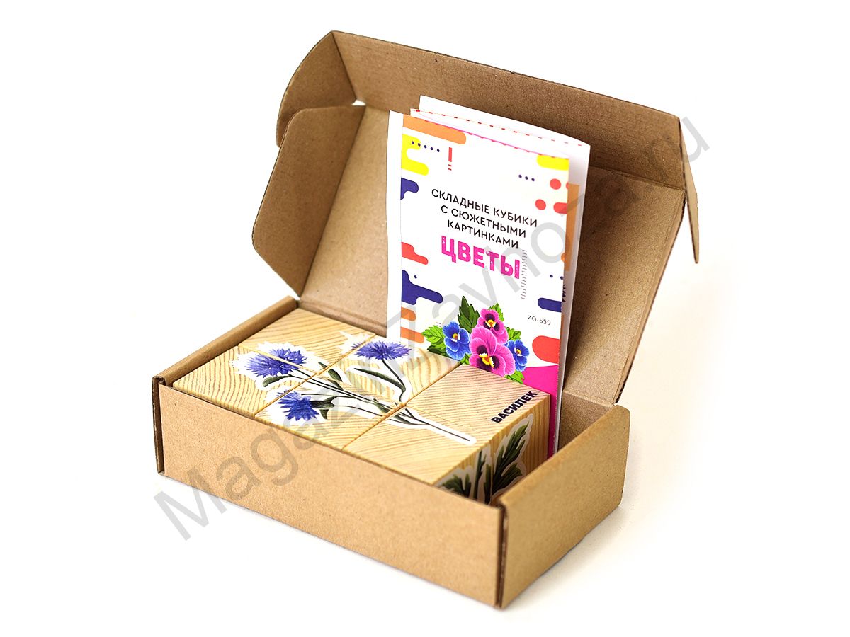 Складные кубики с сюжетными картинками ЦВЕТЫ 6 штук