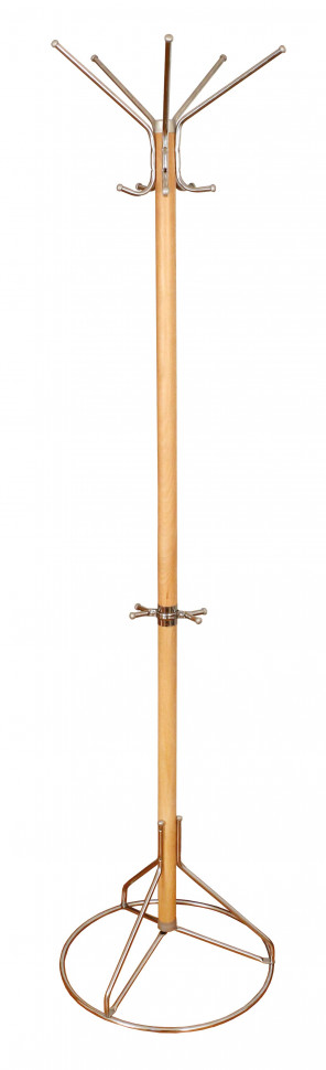 Вешалка для одежды напольная на 5 крючков.Выполнена из натурального дерева. Поставляется в разобранном виде в картонной таре. Крючки и основание вешалки напольной выполнены из серого металлика.
