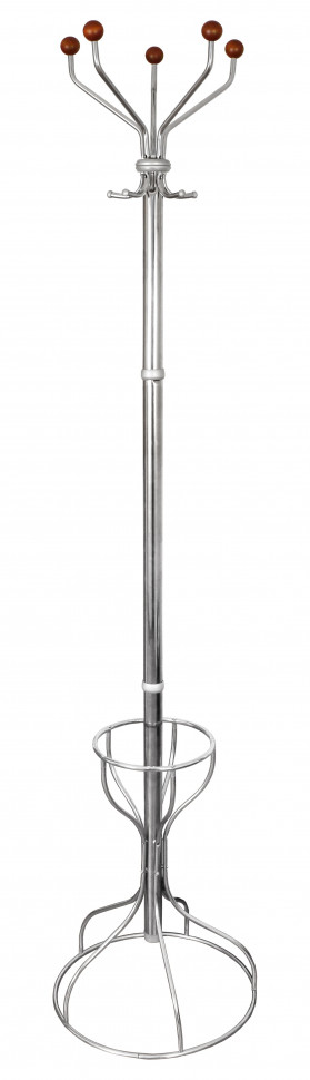 Вешалка напольная на 5 крючков. Выполнена из зеркальной нержавеющей стали. Поставляется в разобранном виде картонной таре. Крючки и основание вешалки напольной выполнены из серого металлика.