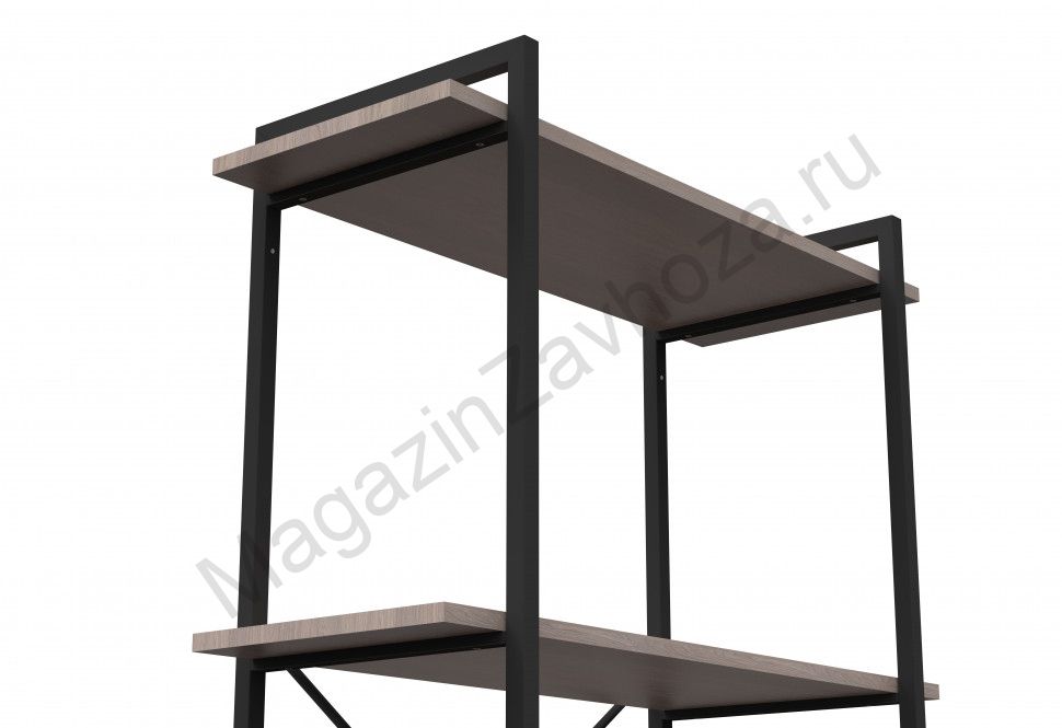 Каркас стеллажей изготовлен из стальной профильной трубы 20х20мм, представляет собой две вертикальные стойки, выполняющие функцию опор. Сзади перекрещивающиеся стяжки из трубы Ф10мм для усиления каркаса. Покрытие порошковое полимерное. Цвет стоек - черный.