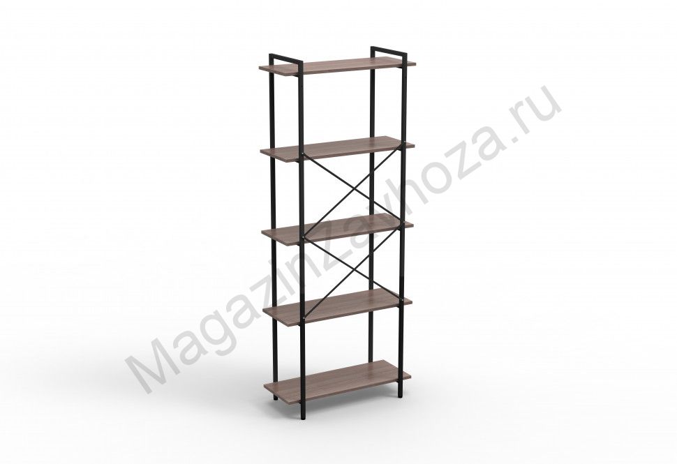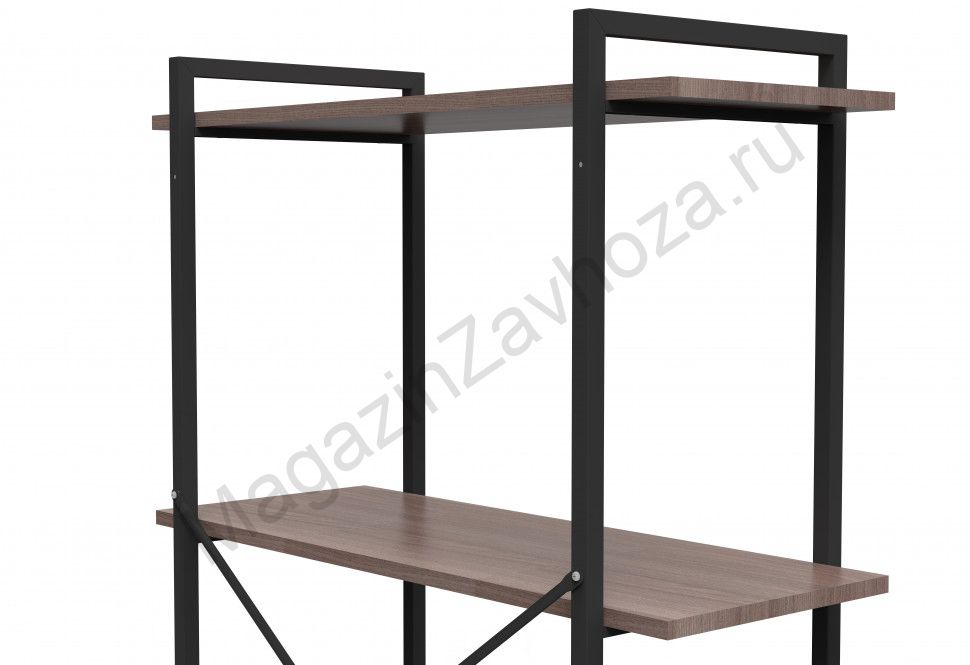 Каркас стеллажей изготовлен из стальной профильной трубы 20х20мм, представляет собой две вертикальные стойки, выполняющие функцию опор. Сзади перекрещивающиеся стяжки из трубы Ф10мм для усиления каркаса. Покрытие порошковое полимерное. Цвет стоек - черный.