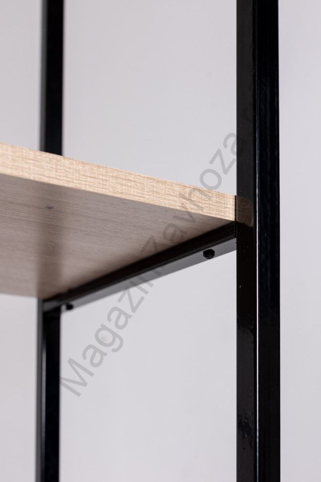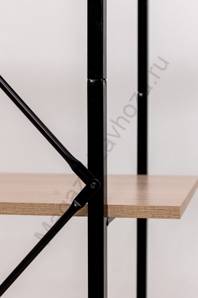 Каркас стеллажей изготовлен из стальной профильной трубы 20х20мм, представляет собой две вертикальные стойки, выполняющие функцию опор. Сзади перекрещивающиеся стяжки из трубы Ф10мм для усиления каркаса. Покрытие порошковое полимерное. Цвет стоек - черный.