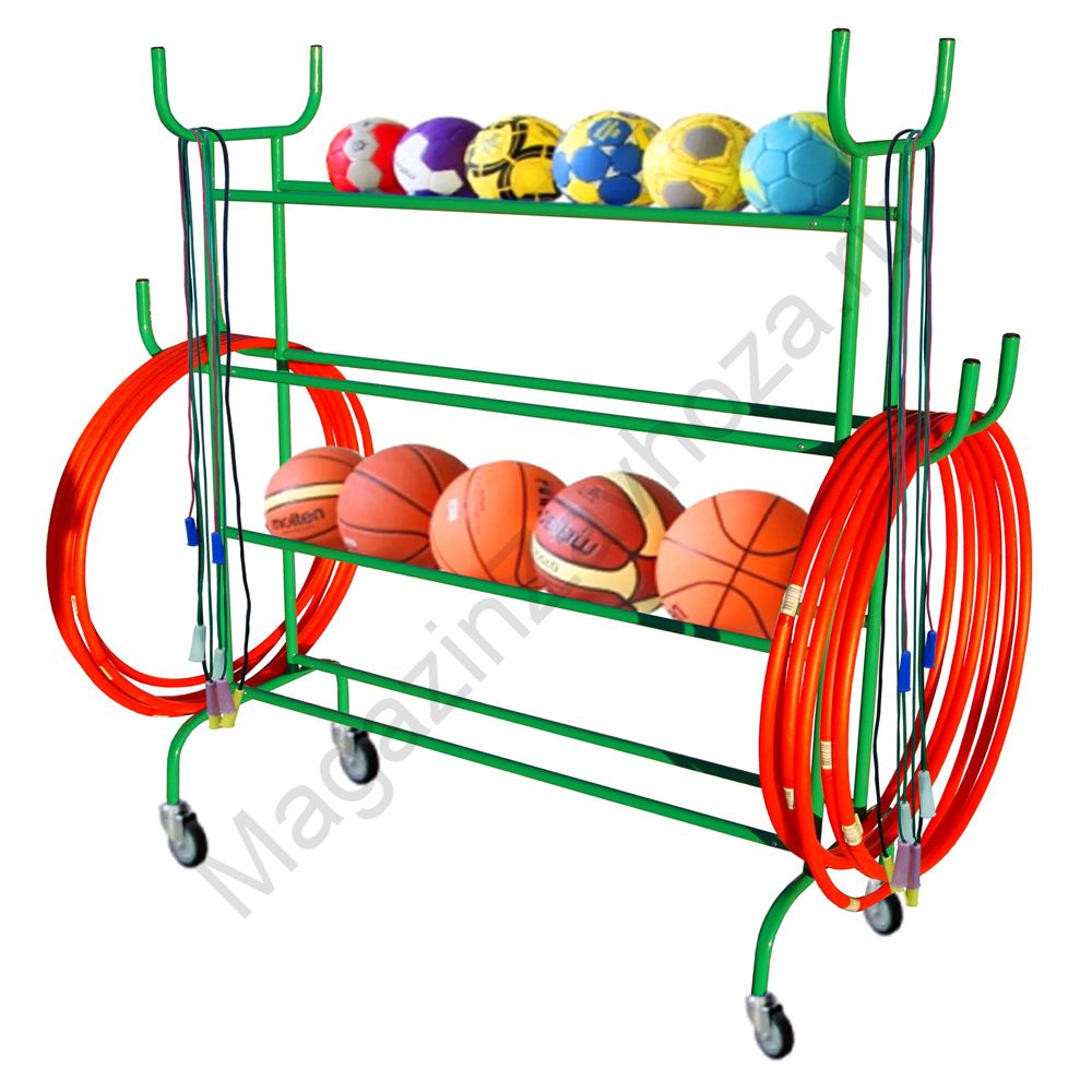 Из металлической трубы 22мм Покрытие: полимерно-порошковое Цвета: синий,желтый,зеленый,красный, оранжевый,белый,бежевый. Размеры: 1550х500х1500мм Конструкция разборная. На поворотных усиленных резиновых колёсных опорах, 2 из них со стопором (тормозом). Вес 15 кг. Объём 0,2 м/куб.