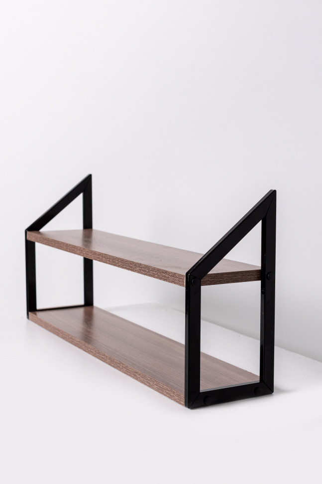 Стеллаж настенный, настольный. В комплект входит крепеж для крепления к стене, а также и фиксации полок. надежность крепления полок обеспечивает специальный мебельный крепеж - конфирматы. Также возможно расположить на столе. Подходит к Столам Серии Сейм. Боковины изготовлены из профильной стальной трубы 20х10 мм, покрытые порошковой полимерной краской цвет - черный муар. Полки -ЛДСП, Цвет ясень шимо темный, ясень шимо светлый. Поставляется в разобранном виде в картонной таре.