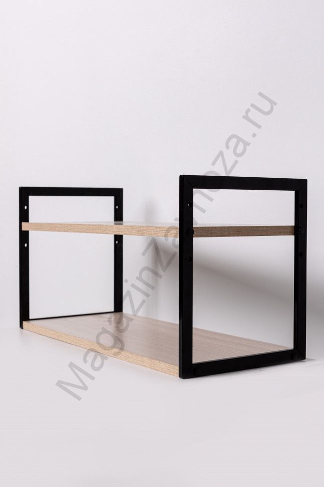 Боковины изготовлены из профильной стальной трубы 20х10 мм, покрытые порошковой полимерной краской цвет - черный муар. Полки -ЛДСП 16мм, Цвет ясень шимо темный, ясень шимо светлый. ​Поставляется в разобранном виде в картонной таре.