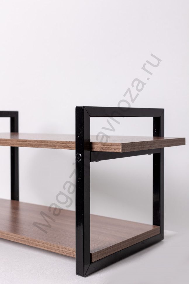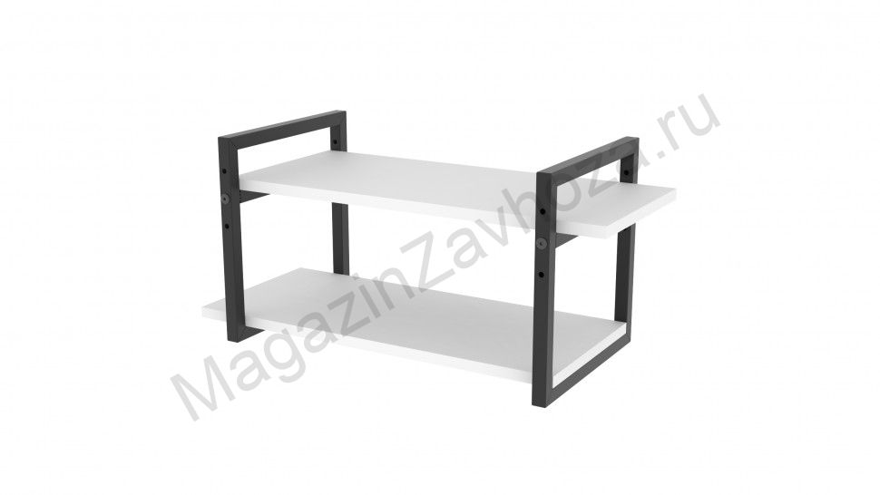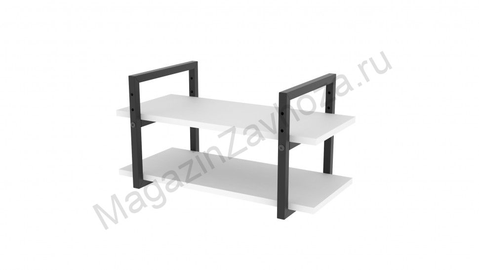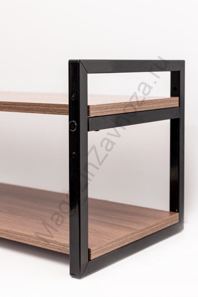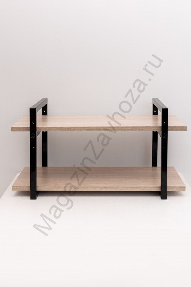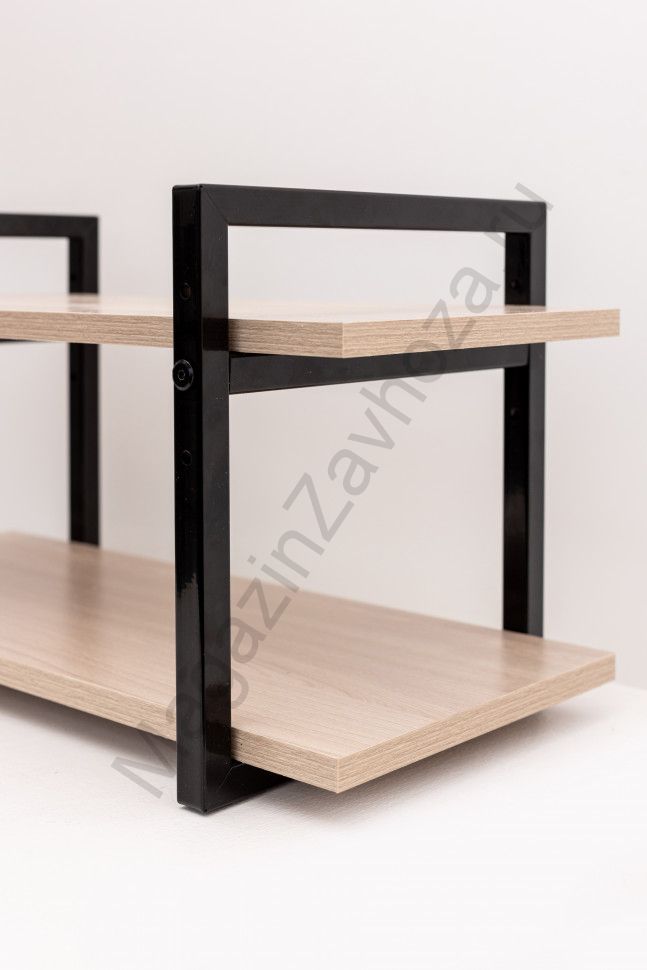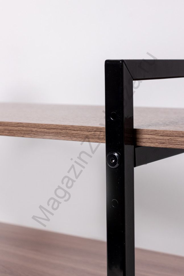 Боковины изготовлены из профильной стальной трубы 20х10 мм, покрытые порошковой полимерной краской цвет - черный муар. Полки -ЛДСП 16мм, Цвет ясень шимо темный, ясень шимо светлый. ​Поставляется в разобранном виде в картонной таре