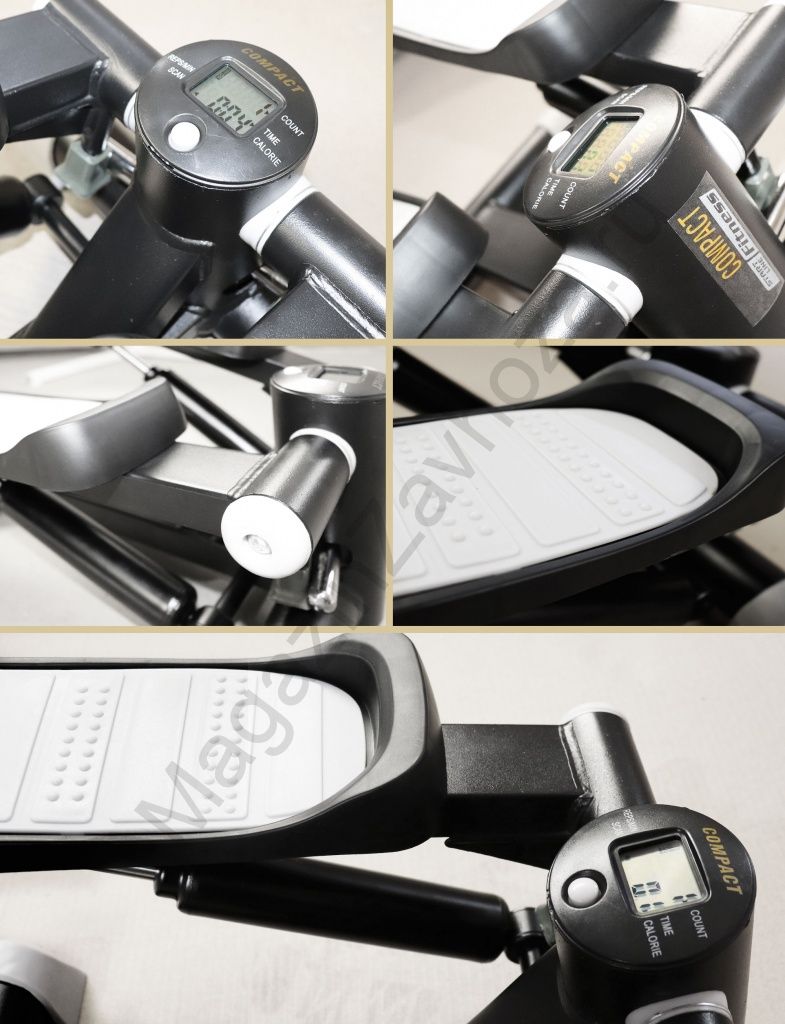 Мини-степпер Compact – мобильная версия обычного полногабаритного степпера, имитирует ходьбу по ступеням,задействует основную группу мышц, улучшает работу сердечной и кровеносной систем, снижает вес. Устойчивая рама и удобные противоскользящие педали обеспечивают безопасность тренировок. Поверхность педалей имеет дополнительный рельеф для массажа ног. Гидравлический привод дает плавную амплитуду движения. Компактность и удобство - главные преимущества степпера Compact. Он занимает мало места при занятиях и хранении, легко начать тренировку в любое подходящее время в комфортной домашней обстановке. Степпер - действительно идеальное оборудование для фитнеса, позволяющее: формировать тонус бедер, талии, ног; создать идеальную фигуру, снизить вес; улучшить работу сердечной и кровеносной систем. Инструкцию по сборке и эксплуатации тренажера можно скачать здесь Гарантия на товар