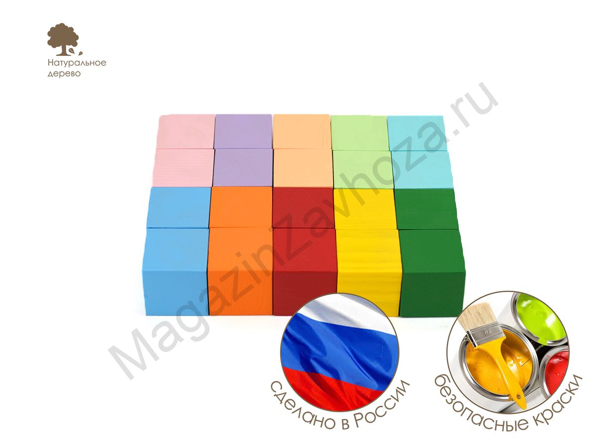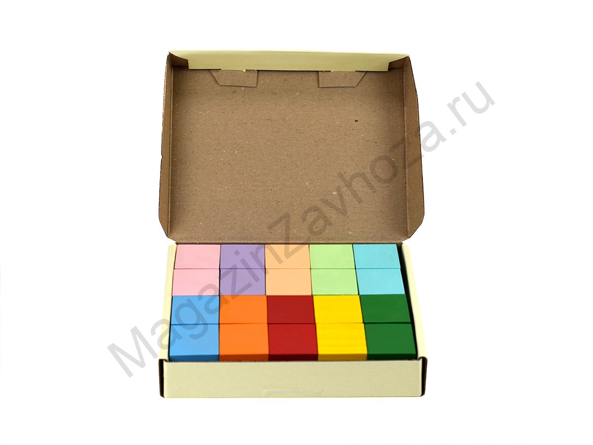 Строительный набор из дерева ЦВЕТНЫЕ КУБИКИ 20 штук КАРТОН