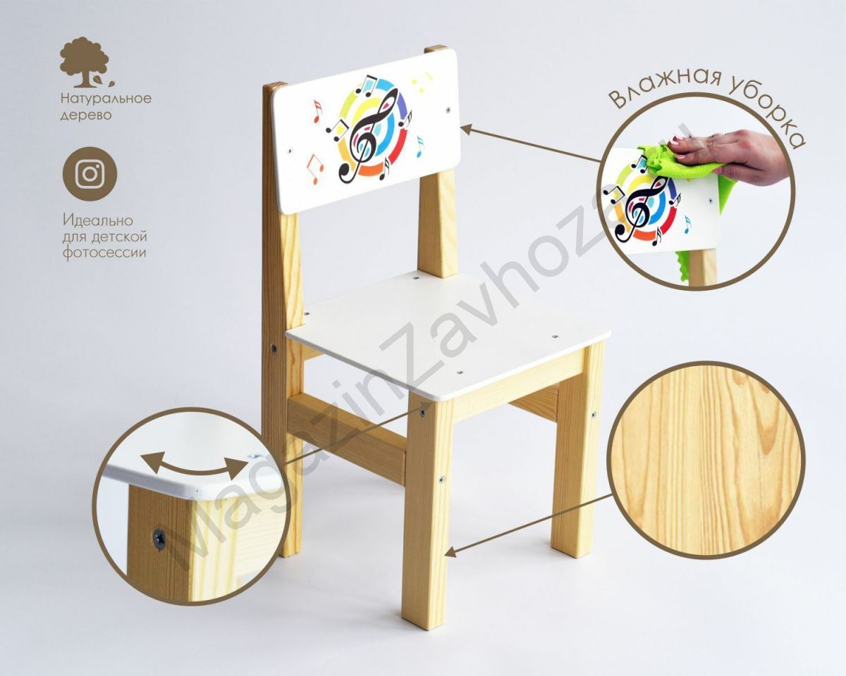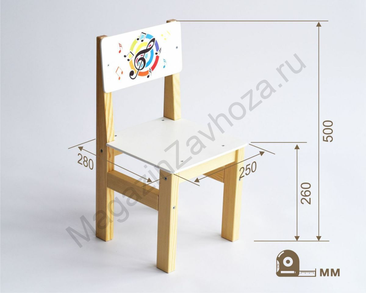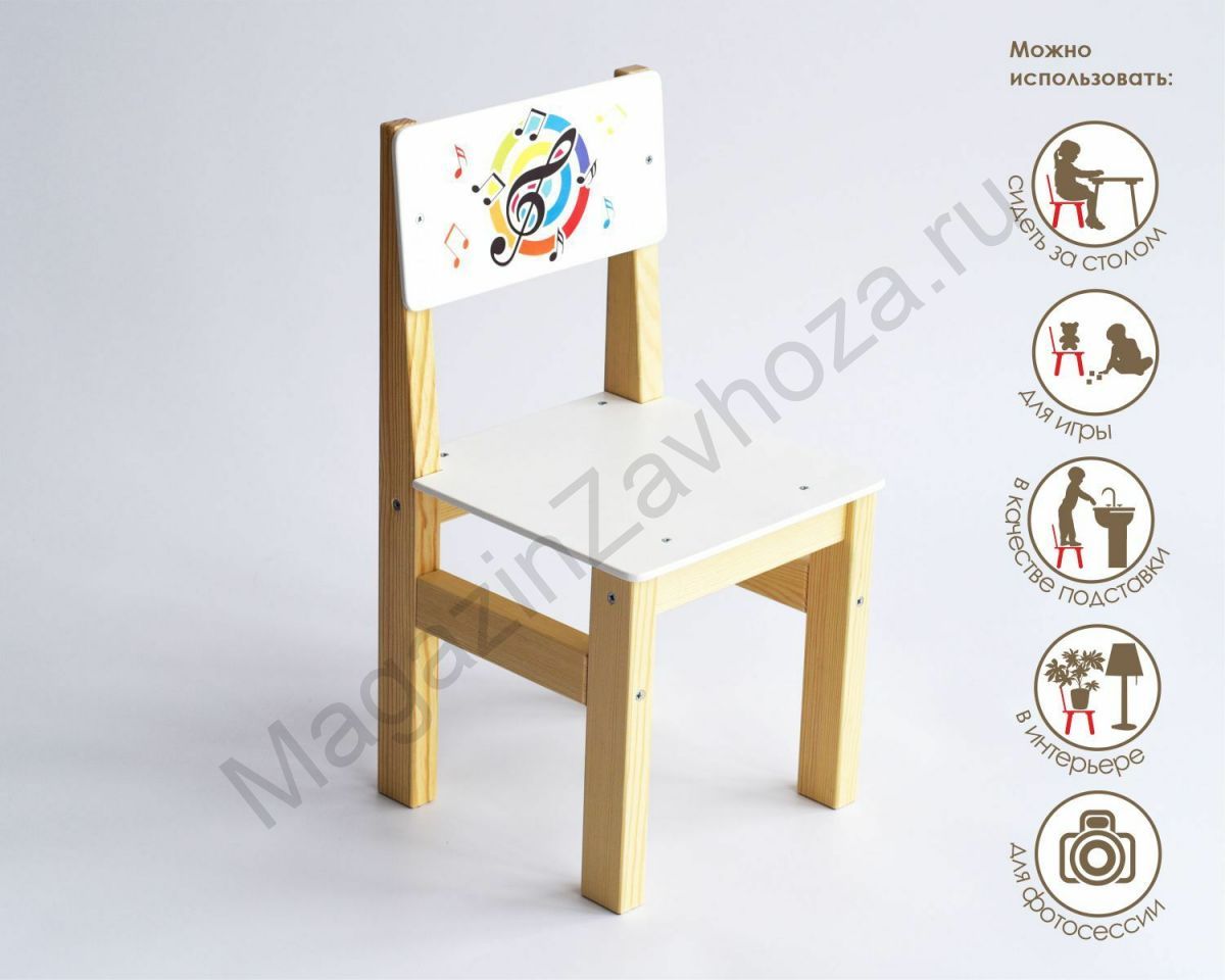 Стул детский деревянный для музыкального зала СКРИПИЧНЫЙ КЛЮЧ 3 ростовая группа