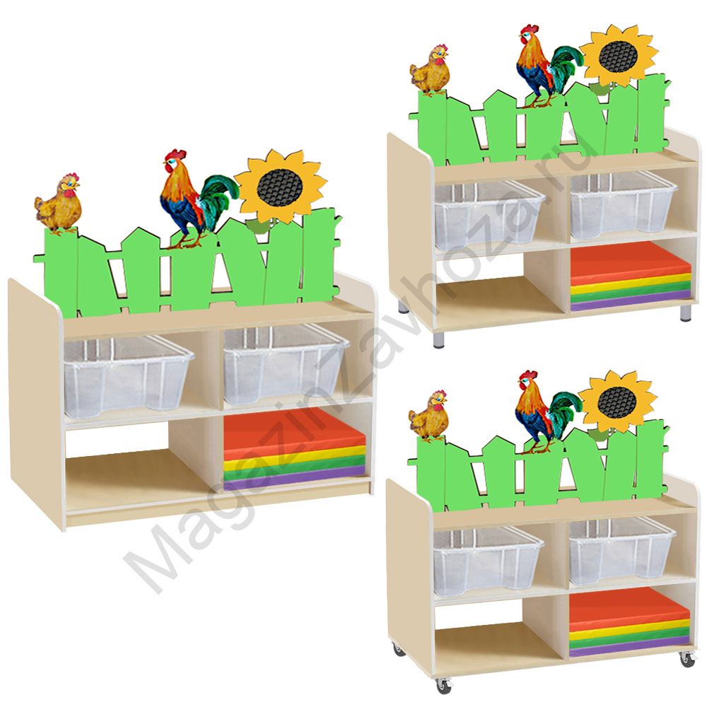 ТУМБА ДЛЯ ИГРУШЕК И ПОСОБИЙ 19 ДВУСТОРОННЯЯ С 4-МЯ КОНТЕЙНЕРАМИ И МИНИ-МАТАМИ