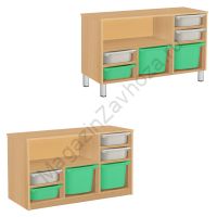 Из ЛДСП Бук или Цветного на цоколе р-ры: 976х450х650мм На метел.ножках р-ры: 976х450х690мм Вес:27кг Объём:0,06м/куб Контейнер ПВХ:300х420х100мм - 4шт. Контейнер ПВХ:300х420х230мм - 2шт. Направляющий полозок алюминий.