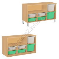Из ЛДСП Бук или Цветного на цоколе р-ры: 976х450х650мм На метел.ножках р-ры: 976х450х690мм Вес:27кг Объём:0,06м/куб Контейнер ПВХ:300х420х100мм - 4шт. Контейнер ПВХ:300х420х230мм - 2шт. Направляющий полозок алюминий.