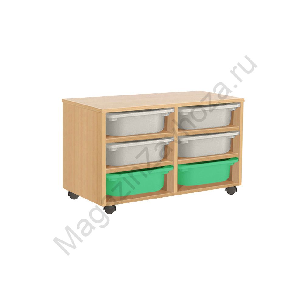 Из ЛДСП Бук или Цветного Кромка ПВХ. Размеры:650х450х500мм Вес:21кг Объём:0,07м/куб Контейнер ПВХ:300х420х100мм - 6шт. Установлены пластиковые или усиленные поворотные прорезиненные колеса. 2 из них со стопором (тормозом). Направляющий полозок алюминий.