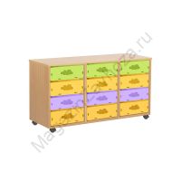 Из ЛДСП Бук или Цветного Кромка ПВХ. Размеры:976х450х650мм Вес:38кг Объём:0,05м/куб Контейнер МДФ:300х420х100мм - 12шт. цвета - ЛАЙМ, ГОЛУБОЙ, ОРАНЖЕВЫЙ, РОЗОВЫЙ, ЖЕЛТЫЙ, ИРИС. Установлены пластиковые или усиленные поворотные прорезиненные колеса. 2 из них со стопором (тормозом). Направляющий полозок алюминий.